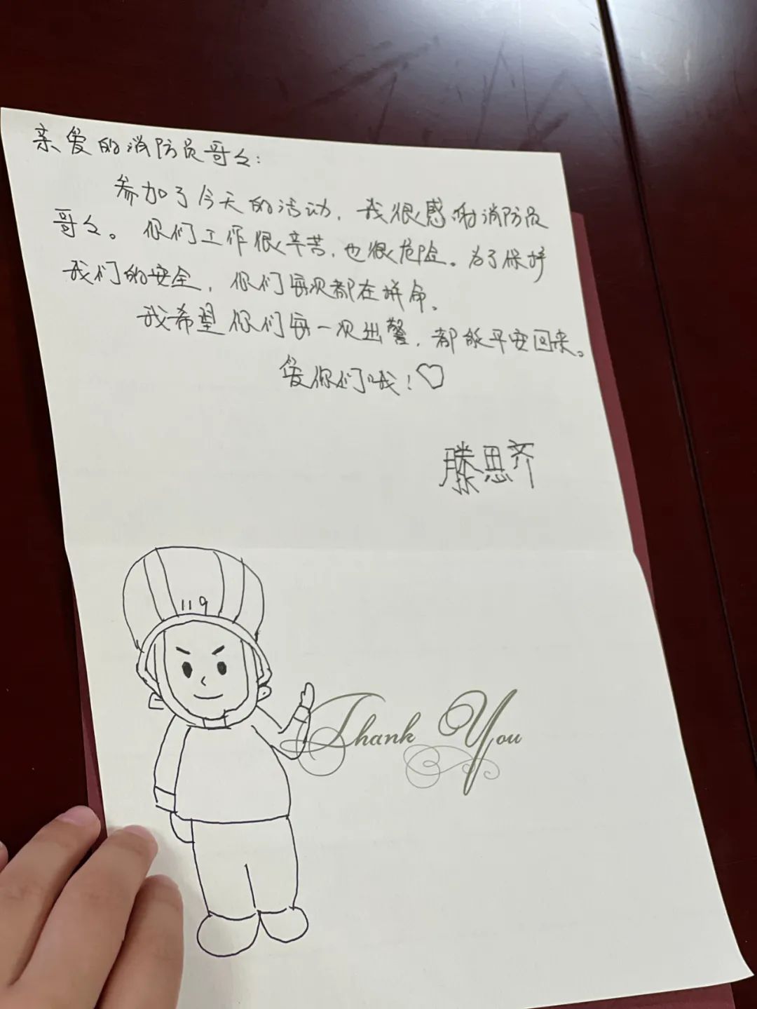 最初,天参不雅体验的感触感染小朋朋们亲手写下今,叔奉上祝愿为救火员叔。先生暗示家长李,对孩女很是成心义如许的体验,了消防学问既到,好的职业体验又是一次很,防兵士的辛苦取苦守也让孩女领会到消。