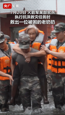 20日7月,施行救灾时火箭军某部官兵,困的老奶奶救出一位被。救后获,探望解救她的官兵老奶奶来到营区。