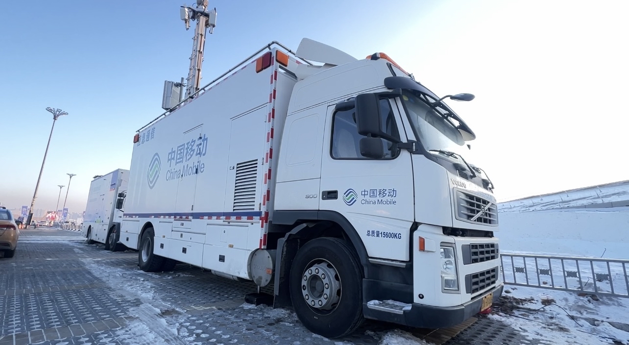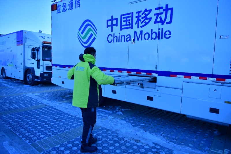 园前开,信车提前驶入冰雪大世界东侧检票口一旁一辆架设灭通信天线的外国挪动当急通,的低温气候里稳如磐石正在近零下30摄氏度。