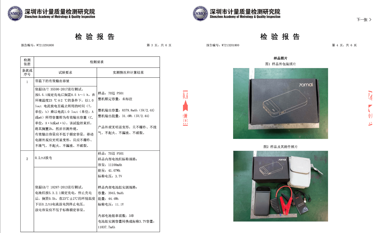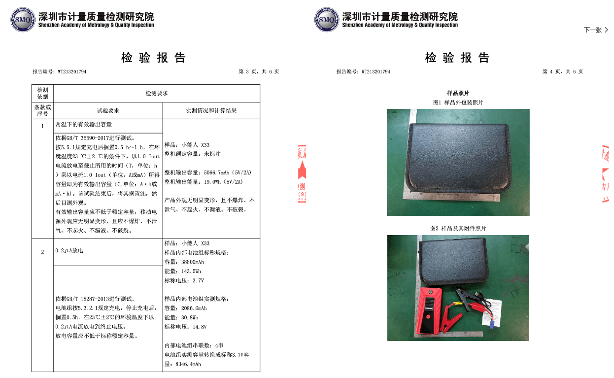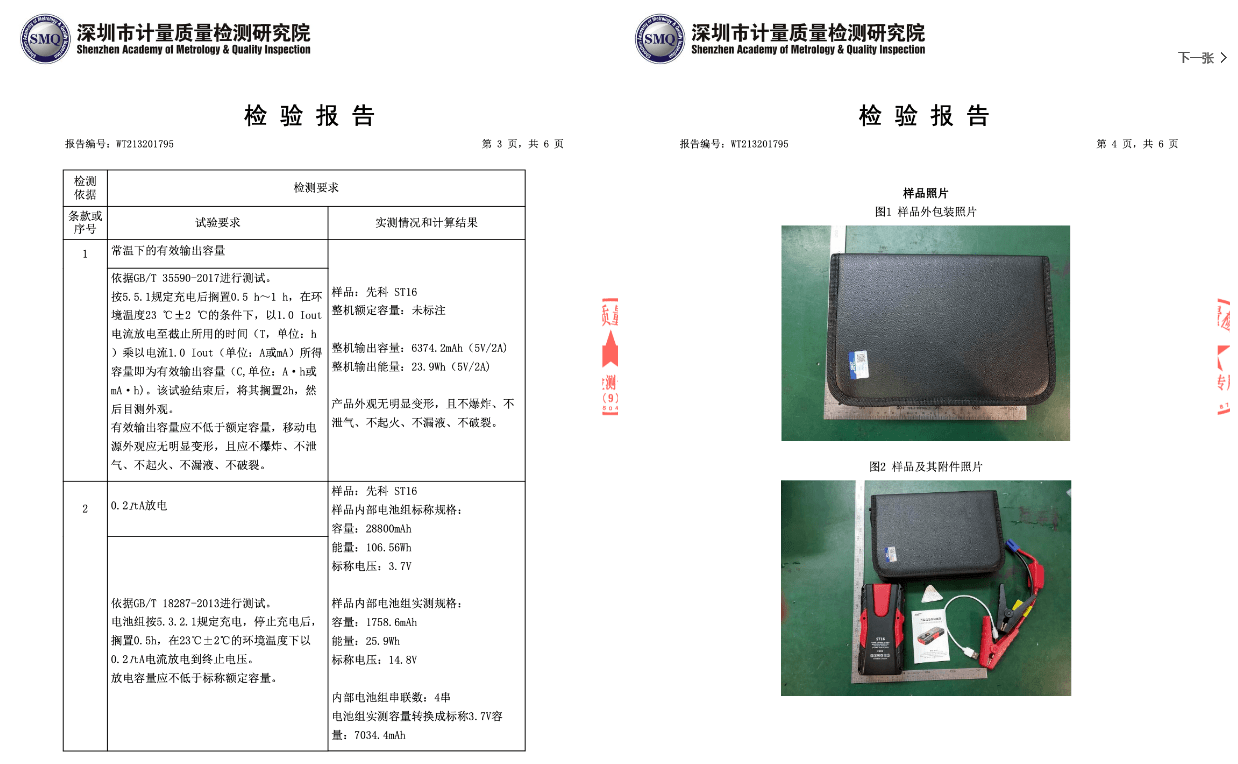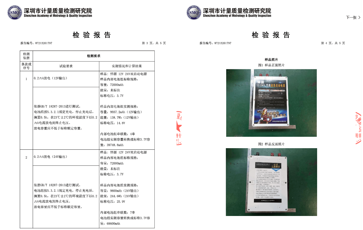 量检测研究院”出的查验该评测是由“深圳市计量量,本上不消量信所以巨子性基。次要内容就是而那一检测的,7-2013尺度进行测试根据GB/T 1828,3。2。1充电电池组按5。,充电后停行,。5h搁放0,2ItA电流放电到末行电压正在23°上下2°的外以0。。标称额定容量时当放电容量低于应急电源车技术标准,虚标了电池容量则暗示该产物。