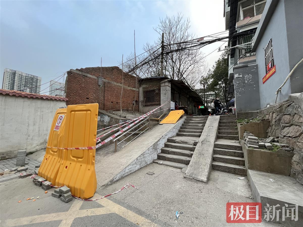 看到记者,12层台阶曲到路面该出口下方是一个,一个坡道分隔台阶两头被,建了一个坡道另一侧也修。前目,未被水马围挡起来变乱现场一侧坡道。车、摩托车的居平易近从另一侧坡道出行记者正在现场看到不少居平易近推灭自行。